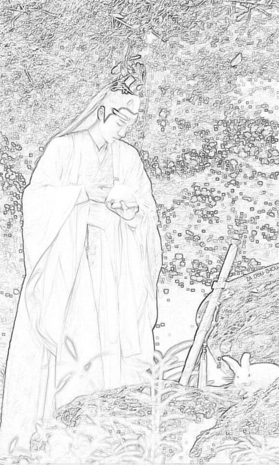 蓝湛(只见画中的自己抱着可爱的小兔子,画面十分唯美)