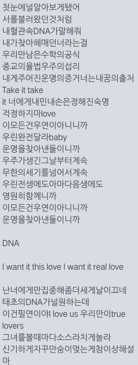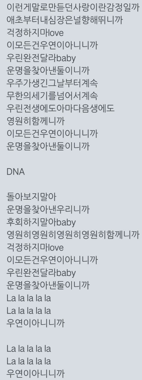 BTS韩文歌词【DNA】