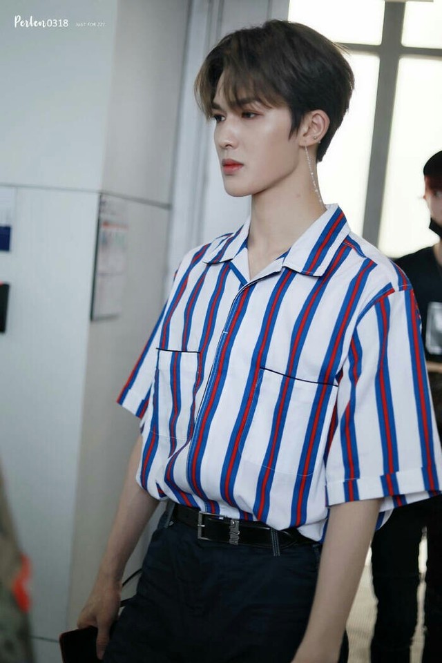 朱正廷身穿一件条形衬衫,一条黑色休闲裤,一身简单的打扮却引来了很多人的注意。