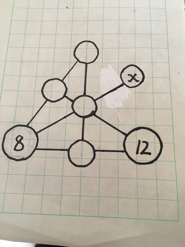 虎鲨每一条直线上的三个数中,当中的数是两边两个的平均数,问x是多少?