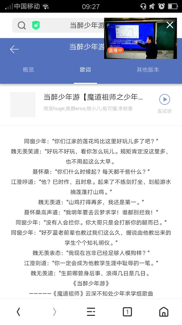 作者(奕羽何归)我最近也听了一些歌,很好听。大家是魔道粉吗?我最近听的歌全是魔道的。《当醉少年游》【魔道祖师之少年求学组篇】很好听哦!大家有兴趣的话也可以去听一下。