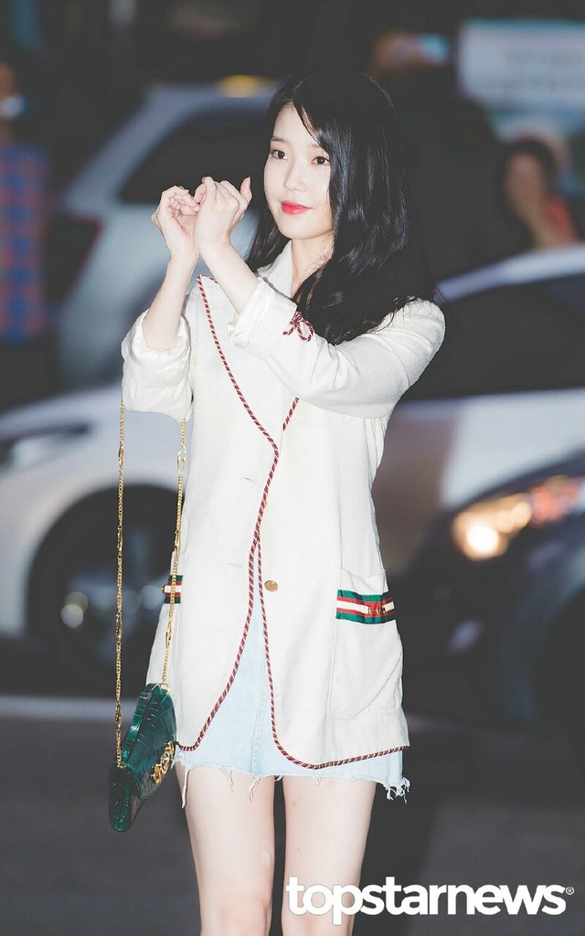 iu很有礼貌的跟粉丝们一一说谢谢,最后临走前还比了心