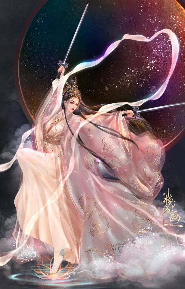 樱蔌手中握紧双刀,兰燚挥着单剑蓄势待发,远歌见状双手结印,打开了结界。