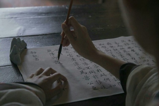 王一博坐在书案前,写着些什么。
