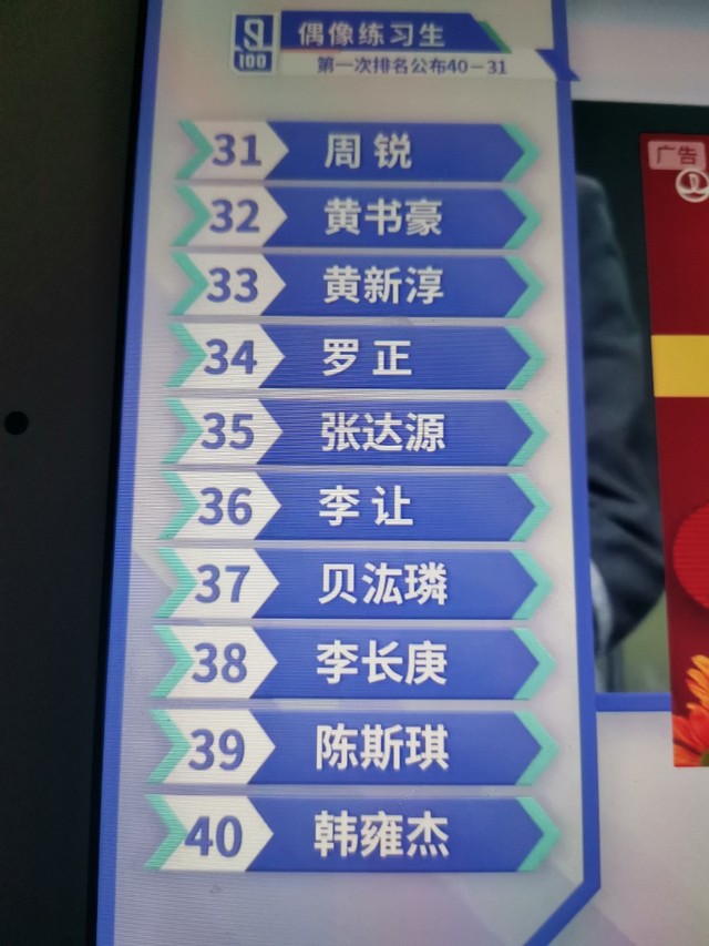 张艺兴现在公布40到31的练习生