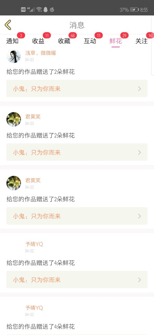 作者谢谢小姐姐们的小花花~
