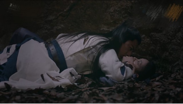 夜色渐浓,二人一路奔跑却不慎掉入一山洞。