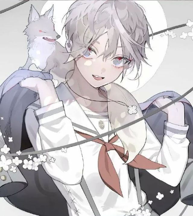 沙曼面前的沙子开始聚拢在一起,一阵不自然的风吹过,沙子里出现了一个白发少年,灰色且有光的眼睛,戴有白色花朵的项链,右肩头有一只闭眼的幼狼