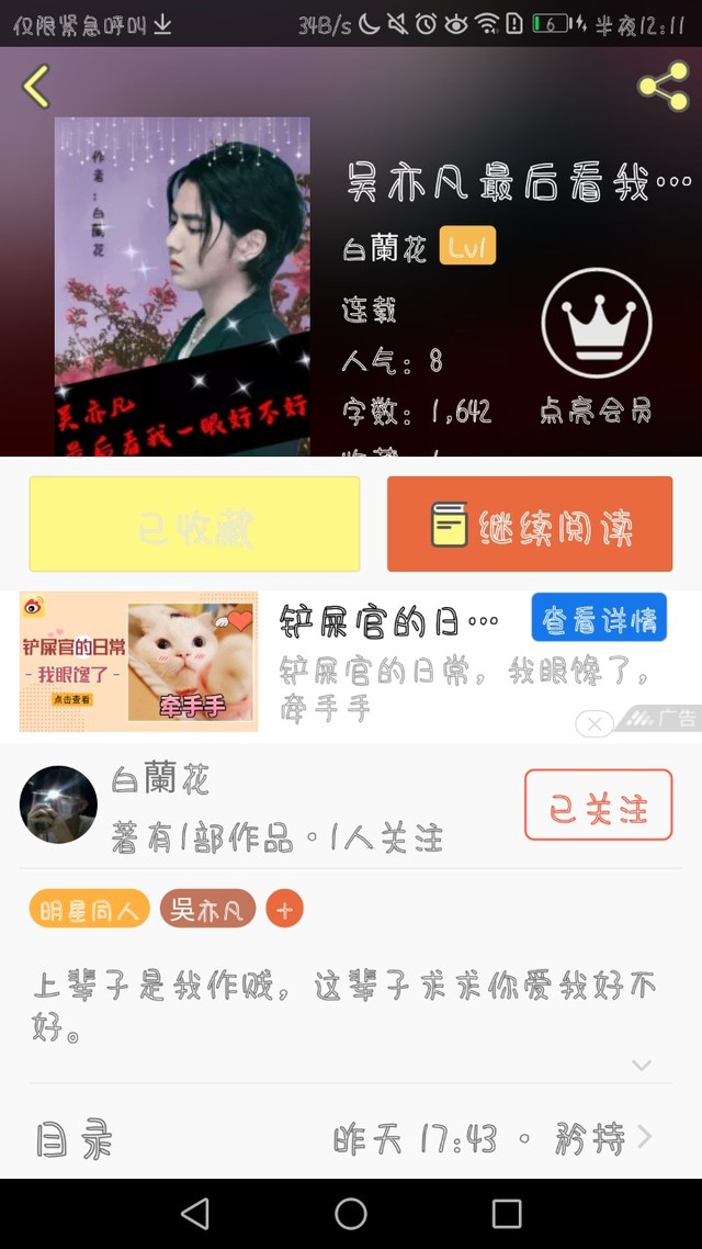 亡妖老祖第一部作品呢,是来自用户白蘭花的《吴亦凡最后看我一眼好不好》