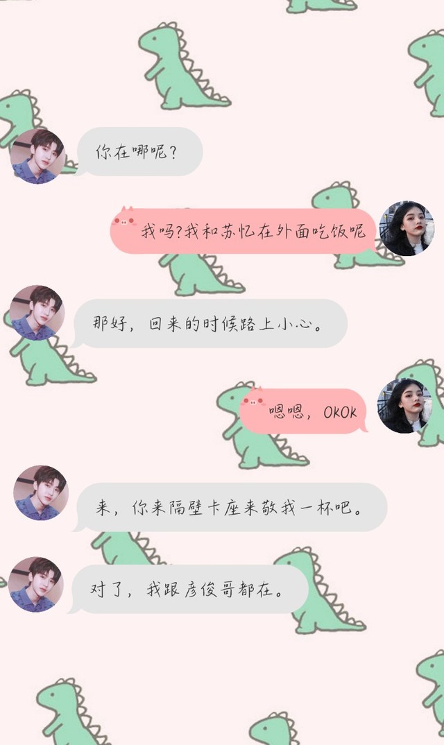 顾陌染刚想反驳苏忆时,突然有人给自己发了条信息,顾陌染拿起手机,发现竟然是蔡徐坤,顾陌染立马慌了。然后手指飞快的在键盘上敲打着。