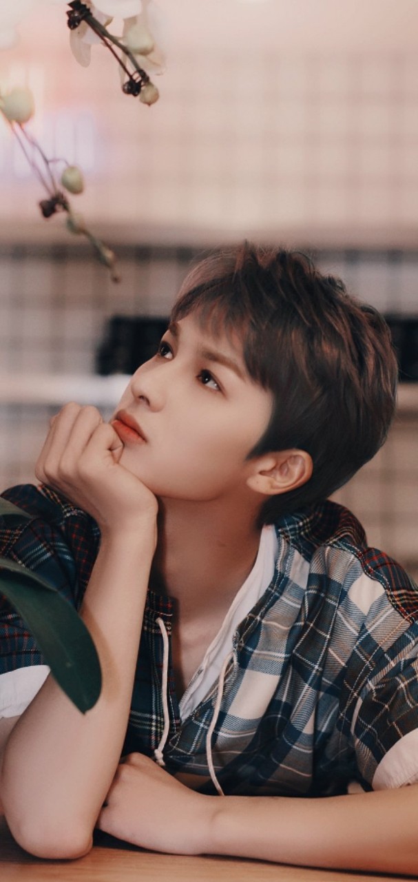 朱正廷一席格子衬衫坐在窗边,他时不时望向窗外,寻找林九笙的身影