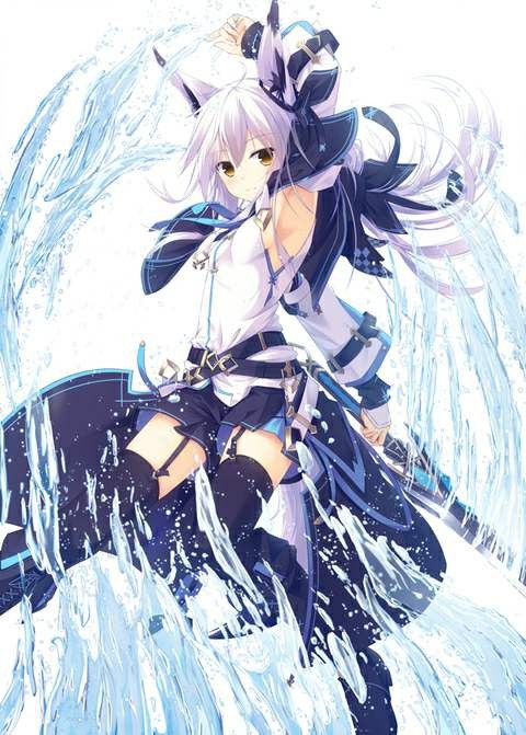 她飞跃到地面,站在铠的面前,开嘴笑着露出俩颗小尖牙。