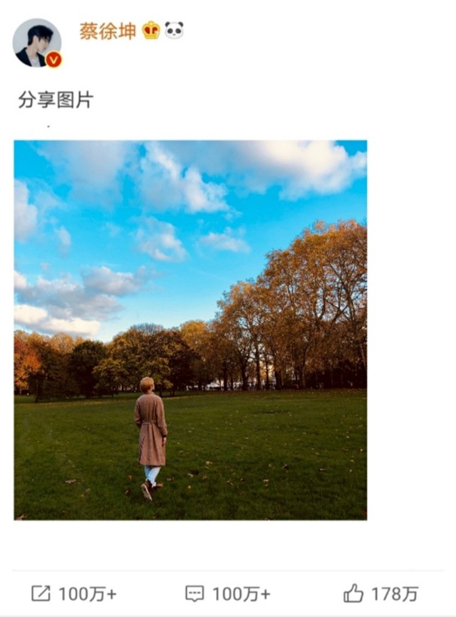 当晚,蔡徐坤心情特别好的发了一条微博。