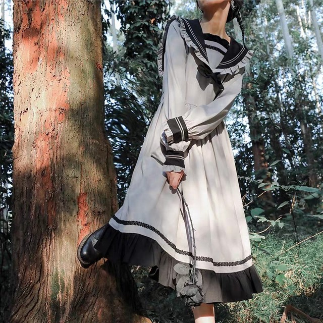 芝士日【银色飞船】jk仿灰连衣裙加上黑色花边,斜边黑色小挎包,倒有了一丝清新软甜的感觉
