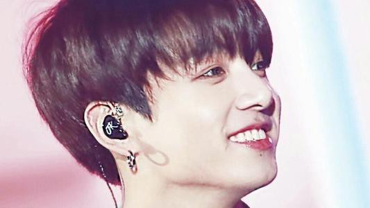 田柾国那皱巴巴的脸瞬间绽放出一个大大的笑意,笑脸可掬。