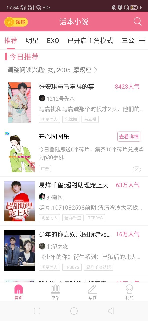 我很高兴,能在推荐里看见我的小说