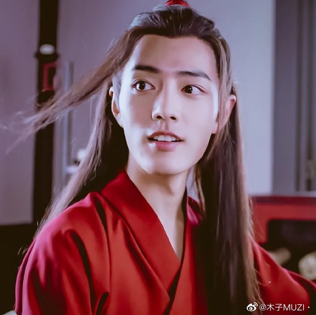 看着魏无羡一袭红衣,头上红色的发带贴着黑色的长发,红的像霞,丰神俊朗,潇洒不羁。