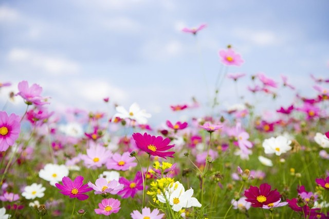 现在是春季雏菊开的正是热闹的时候,走在草地脚会被被淹没在白色,粉色,红色的花海里。放眼望去整个草地都被小雏菊占领了。