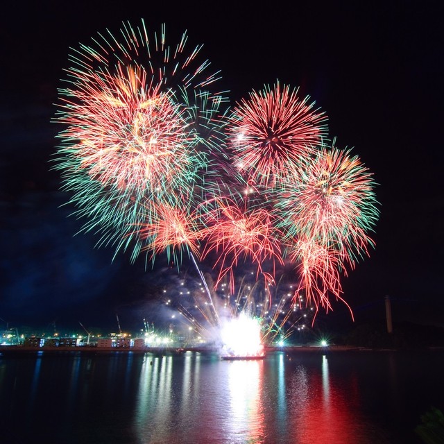 震耳欲聋的烟花爆开的声音,回荡在天际。天空中的皓月与繁星和七彩的烟花遥相呼应,他们都在比拼着谁才是最美丽的。