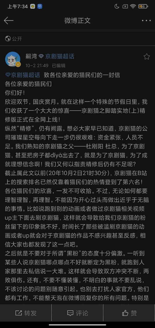 作者大大在这里,我衷心祝贺京剧猫第四季——《京剧猫之脚踏实地》在全网上线,同时也祝京剧猫越来越好,越来越受到更多人的喜欢!