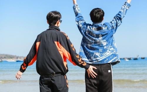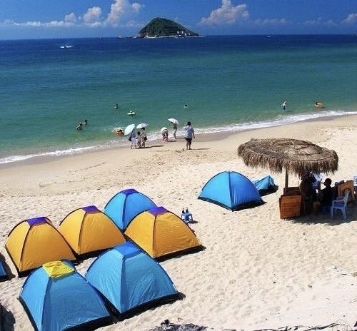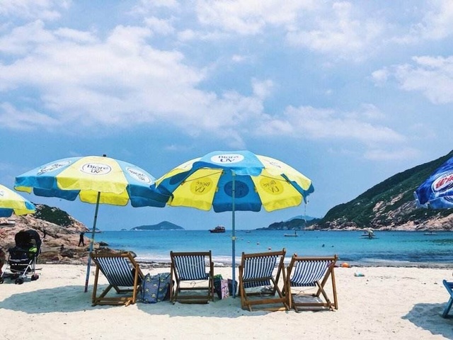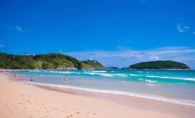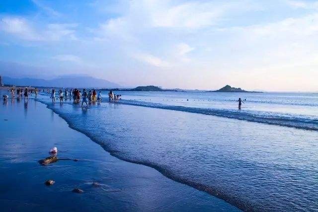 一行人穿着拖hai踩在宽阔的沙滩上,就像踩上了松软、舒适的地毯