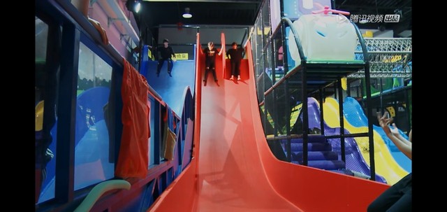 本事在玩滑梯的众人这里变成了跑酷赛道嘛,豪哥试了好久也没有上去,闻闻也加入跑酷当中没有成功,也哥也加入跑酷虽然成功了但成了攀岩