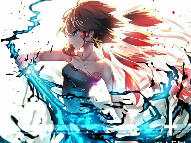薇薇韩手中出现了一些水。水慢慢汇聚变成了一把蓝色的刀。