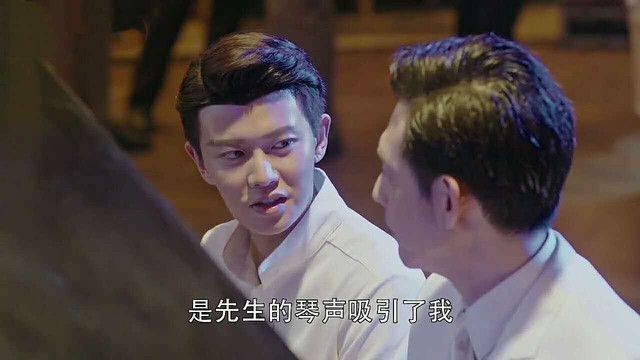 那位穿着白色礼服的先生把琴让给了陆小笨,陆小笨优雅的坐下,用手舞动着美丽的音符,叶冲鼓了鼓掌。