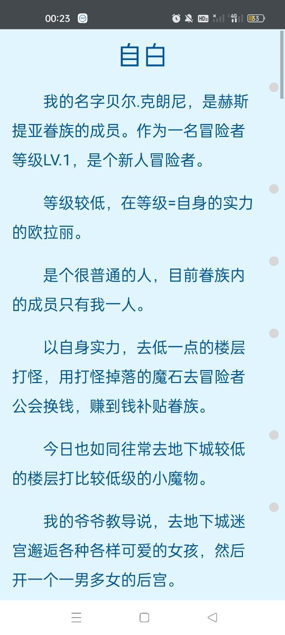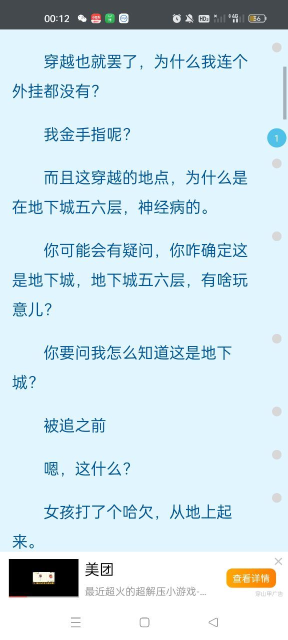 吐槽就类似于我截图的内容,我翻好多下,但是整个屏幕都是你的对话框,没有出现旁白