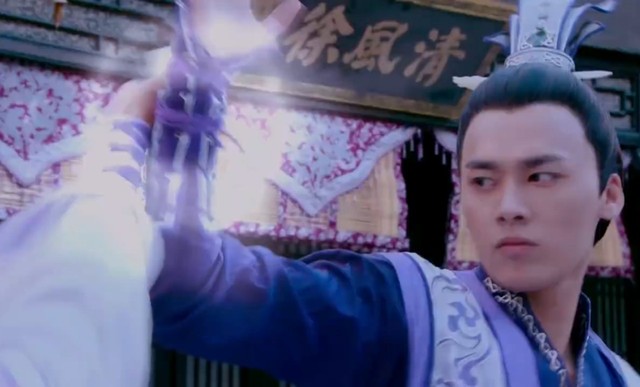 屠苏一脚踢中肇临的右手,香囊就被抛上天,屠苏急忙去拿,可是陵端却出脚踢了屠苏一脚。