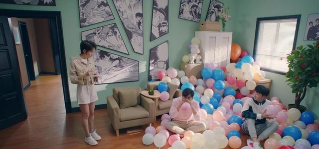 见咖喱酱进来,某两个心虚的人用气球遮挡住脸