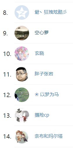 旁白接下来由我向以下小可爱表示感谢~(当然是全体小可爱~和送了花但是我看不到的小可爱们~)