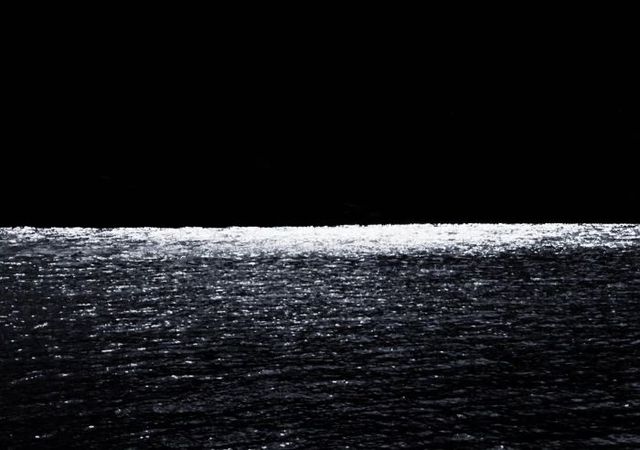 海岸的礁石与海水相汇,月挂在天边.飞鸟翱翔于夜幕之间.