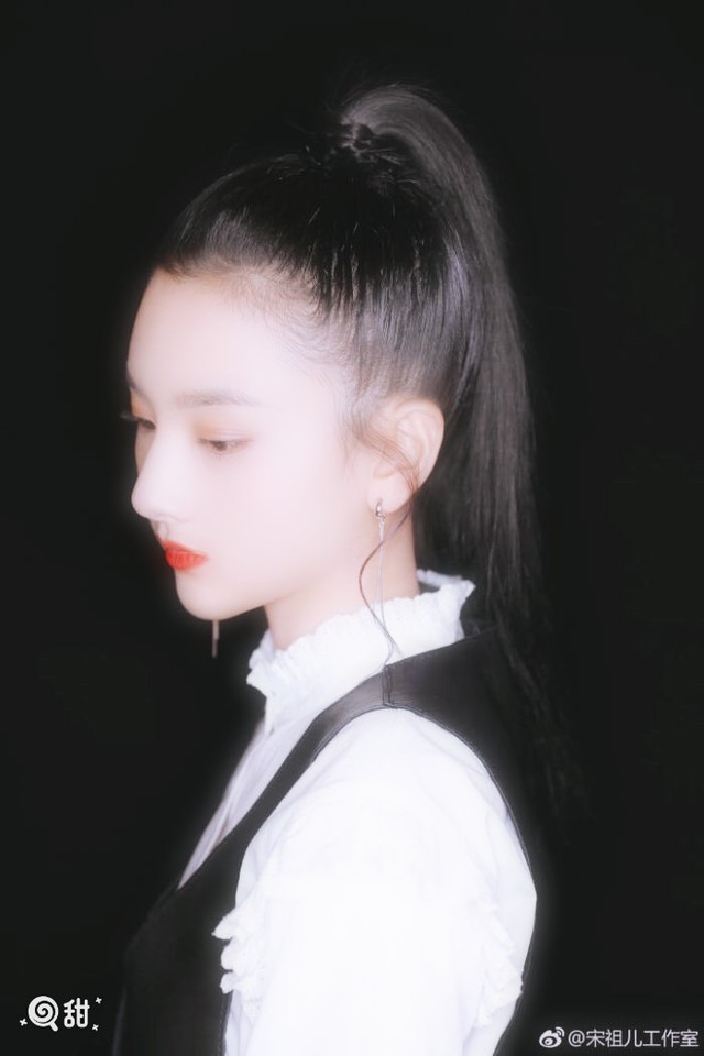 马尾高高扎起,耳坠显得椹茶更精致,是夹的,头上还带着茶叶的夹子,俏皮精致还有些大姐大的意思