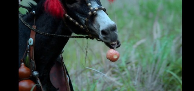 魏无羡拿着苹果,谁知那花驴子不停的够着他的手