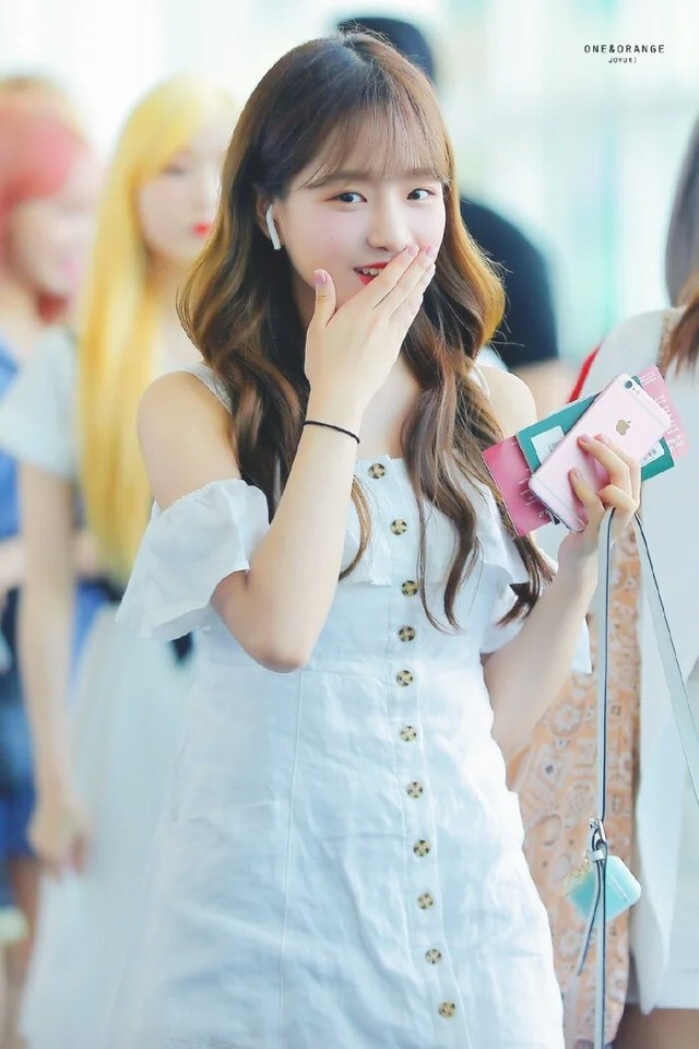 这是一个身穿白色肩带群的女孩儿,手里拿着护照手机等的女孩儿走了出来