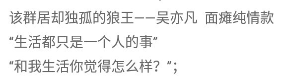 如果拒绝张艺兴是最难受的,那么拒绝吴亦凡就是第二难受的。吴亦凡太坚强了,坚强得过分。芭歌肯定也是想陪在吴亦凡身边吧,陪他去看山水,陪他坐在高处。在吴亦凡这儿,我真的有点讨厌芭歌,为什么要改变他的生活,既然不能一起走下去,为什么要出现,为什么要给机会?