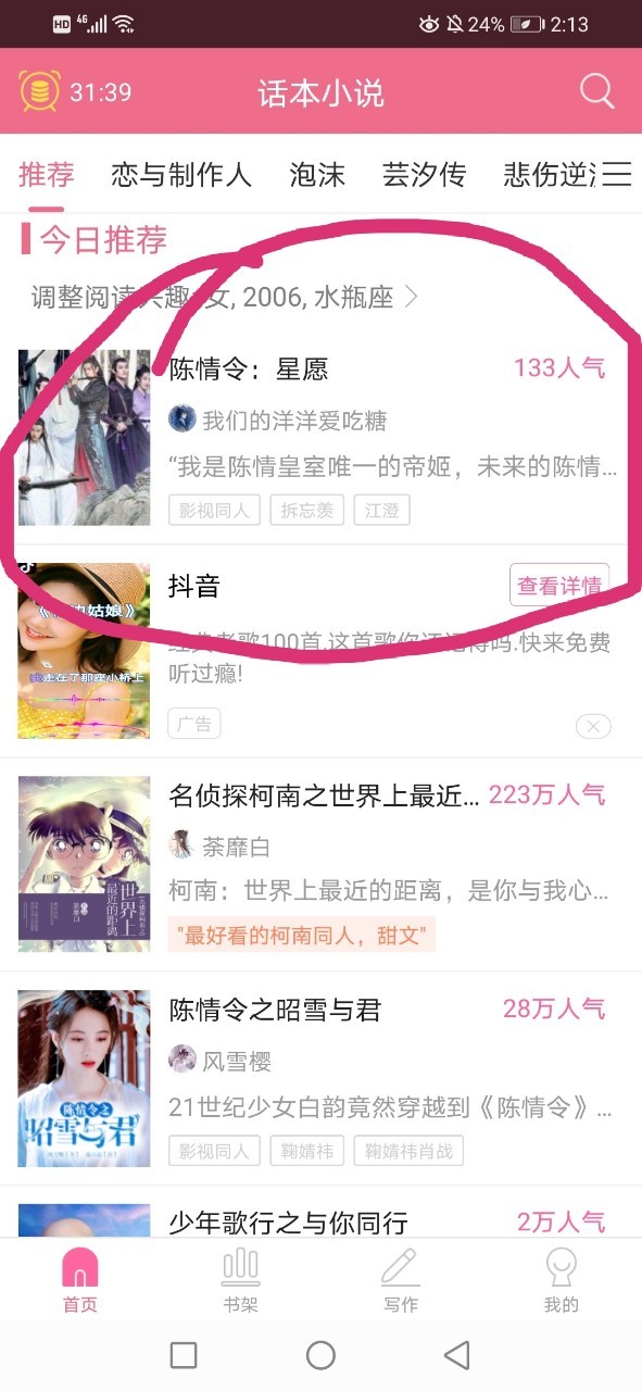 听到魏无羡的名字后愣了一下,随后反应过来。羞红了脸。