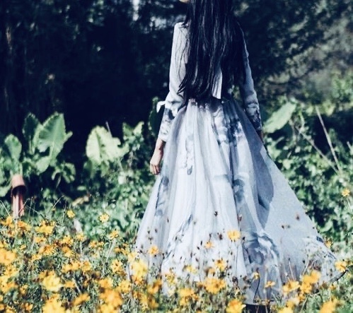 风微微拂过,扬起颜惜素垂到脚裸的素色裙摆----她的背影真的很好看,未曾染烫的长发飘然若羽,柔顺的散落在肩头,长裙摇曳着,像是隐藏了心事。