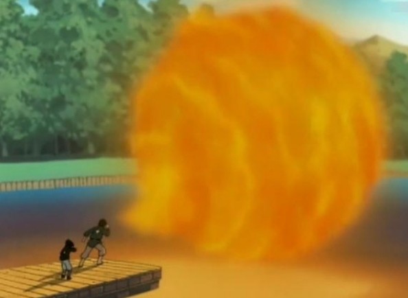 宇智波富岳残梦啊,跟我来,我教你我们宇智波一族的基本忍术。火遁,豪火球之术。