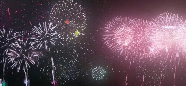 刚说完的下一秒,绚丽多彩的烟花已经在黑暗的天空中出现了