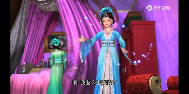 蓝孔雀古典美人,是不是也很适合我啊,主人,你也一起来吧,孔雀之吻,变身闪亮亮(拿出孔雀羽毛)