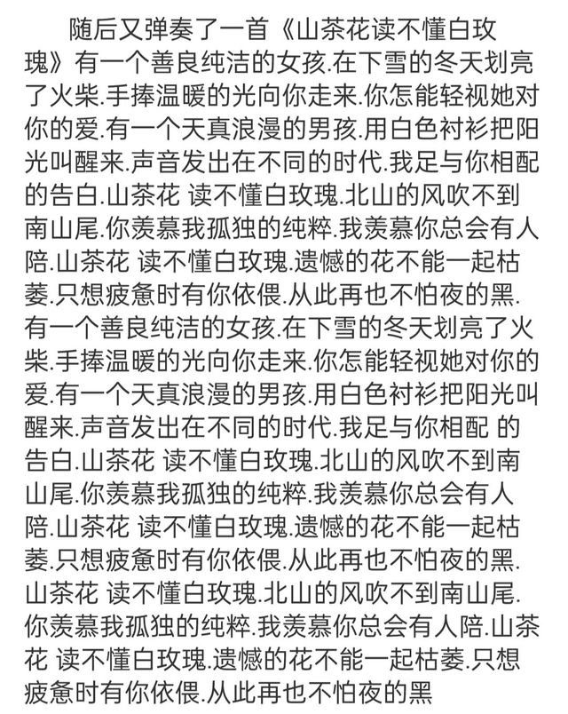随后,又弹奏了一首《山茶花读不懂白玫瑰》