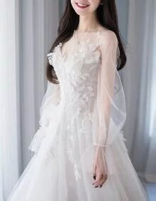 于是她挑了一件白色的纱裙。