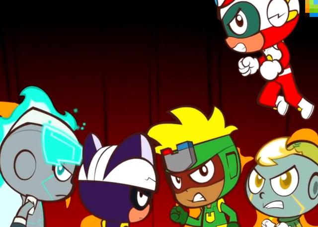伽罗【走到小心超人的旁边,两人对视了一眼】