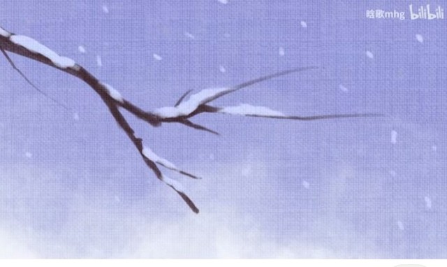 画面一转,两根柱子,一个被雪给掩盖的桥,一棵枝头都是雪的树,一栋房子