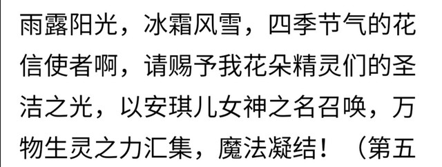彤彤(未变身)花仙的魔法少女,守护之花,樱花魔力变身!圣灵的魔法精灵啊!听从天空守护神的召唤,赐予我樱花的力量,跟随花儿的和平,魔法凝结!