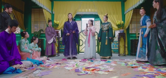 苏寻仙和一些宫人数兰自在地上的名牌,最后结果得出还差521张,这时洛菲菲突然冲进宫殿握着最后的521张名牌赶到,只不过在门口时不小心绊倒,摔了一跤,把地上的一张名牌毁在了火炉里