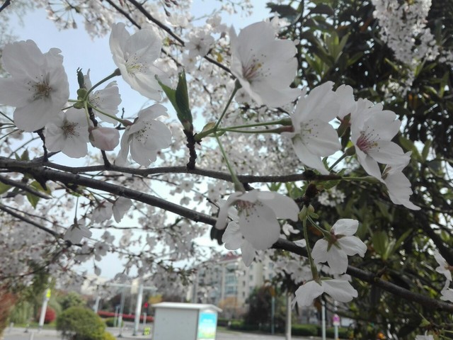 今天和朋友去看樱花了,就是上学路上的