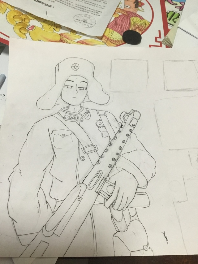 寒假作业要画什么“雷锋行动”,我画了一个雷锋,虽然勾线了,但谁还能帮忙看看吗?😂